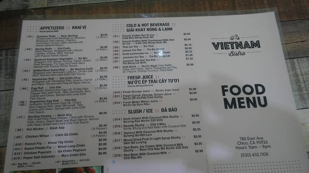 The menu at Vietnam Bistro offers a thoughtfully crafted selection of traditional Vietnamese dishes served in a casual, welcoming setting. It’s the kind of place where you can enjoy comforting bowls of pho, fresh spring rolls, and flavorful rice dishes any time of the day—whether you’re looking for a satisfying lunch, a relaxed dinner, or a simple, soothing meal after a long day.